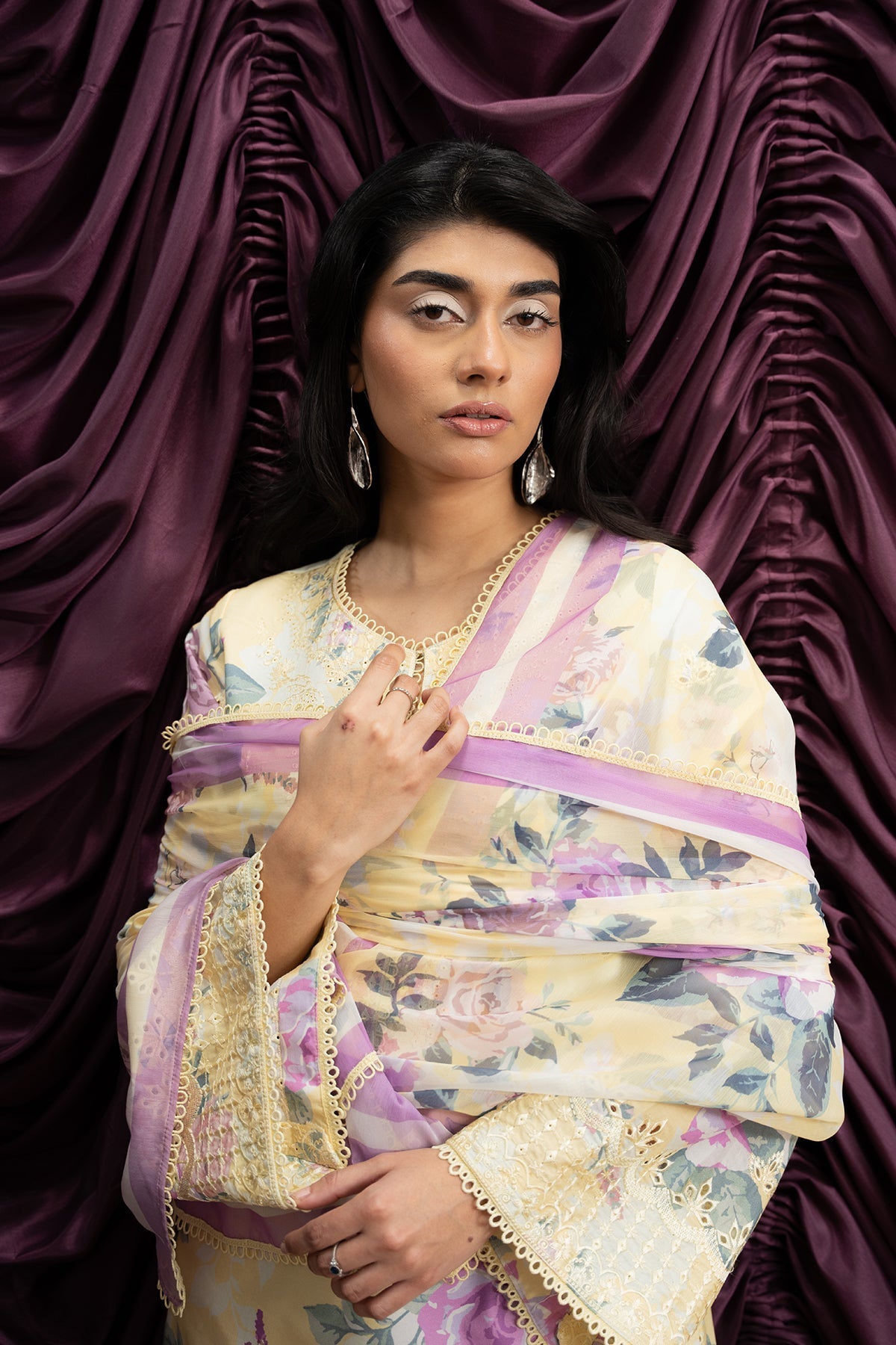 A dreamy fusion of soft yellow tones fine detailing and flowing drapery for effortless elegance.