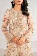 Our product, the embroidered cotton net uf-691, features a digital printed cotton net shirt with embroidered organza handmade neckline and front/back panel borders. The sleeves also have an embroidered organza border. The set also includes an embroidered cotton net dupatta with an organza border as well as a digital printed silk dupatta and dyed silk trouser.