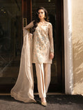A soothing baby blue hue with delicate floral embroidery on a creamy off-white base. The pure organza shirt is adorned with intricate hand embellishments, creating a whimsical and elegant design. Paired with a raw silk trouser, this outfit exudes grace and sophistication, offering a perfect blend of timeless charm and modern allure.