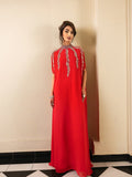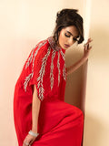 A confident expression of style. The chiffon fabric showcases exquisite 3D hand embellishment work with crystals and stones, creating a dynamic play of texture and shine in captivating red. This outfit is not just a piece of clothing; it's a statement that exudes confidence and contemporary elegance.