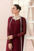 A most elegant and serene spectacle of wine red, crimson and scarlet that plays with the summer lights. €˜Cheries is a masterpiece of design and minimalist excellence, rendered upon an elusive georgette chiffon shirt, that features a fitted, grip fabric trouser and a dainty silk dupatta.