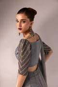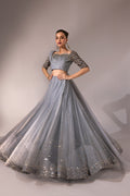 Embark on a whimsical journey into pastoral beauty with our enchanting sDoves ensemble. This faded grey lehnga is a captivating masterpiece that commands attention, featuring exquisite sequins and crystal work adorning the sleeves and embroidery. With its unique composition, this outfit is your perfect choice for standing out and making a lasting impression.
