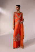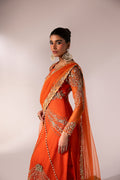 Strike a pose and exude a serene sense of opulent glamour with €˜Tangerines. This formal ensemble nostalgically resplendent and blooming like a ray of sunshine, infuses a zesty energy into all your events and celebrations. Fiona boasts intricate hand embroidery and embellishments, with 3D handmade flowers adorning the short and delicate pearl details.