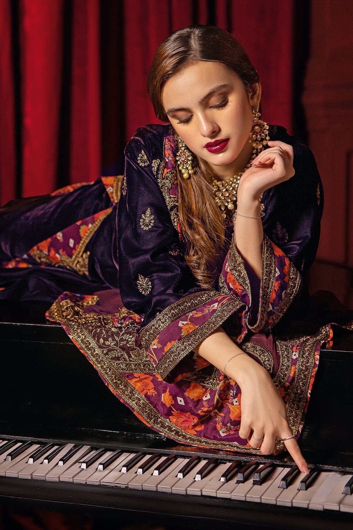 Embroidery Dyed Velvet Front 1.25 Mtr