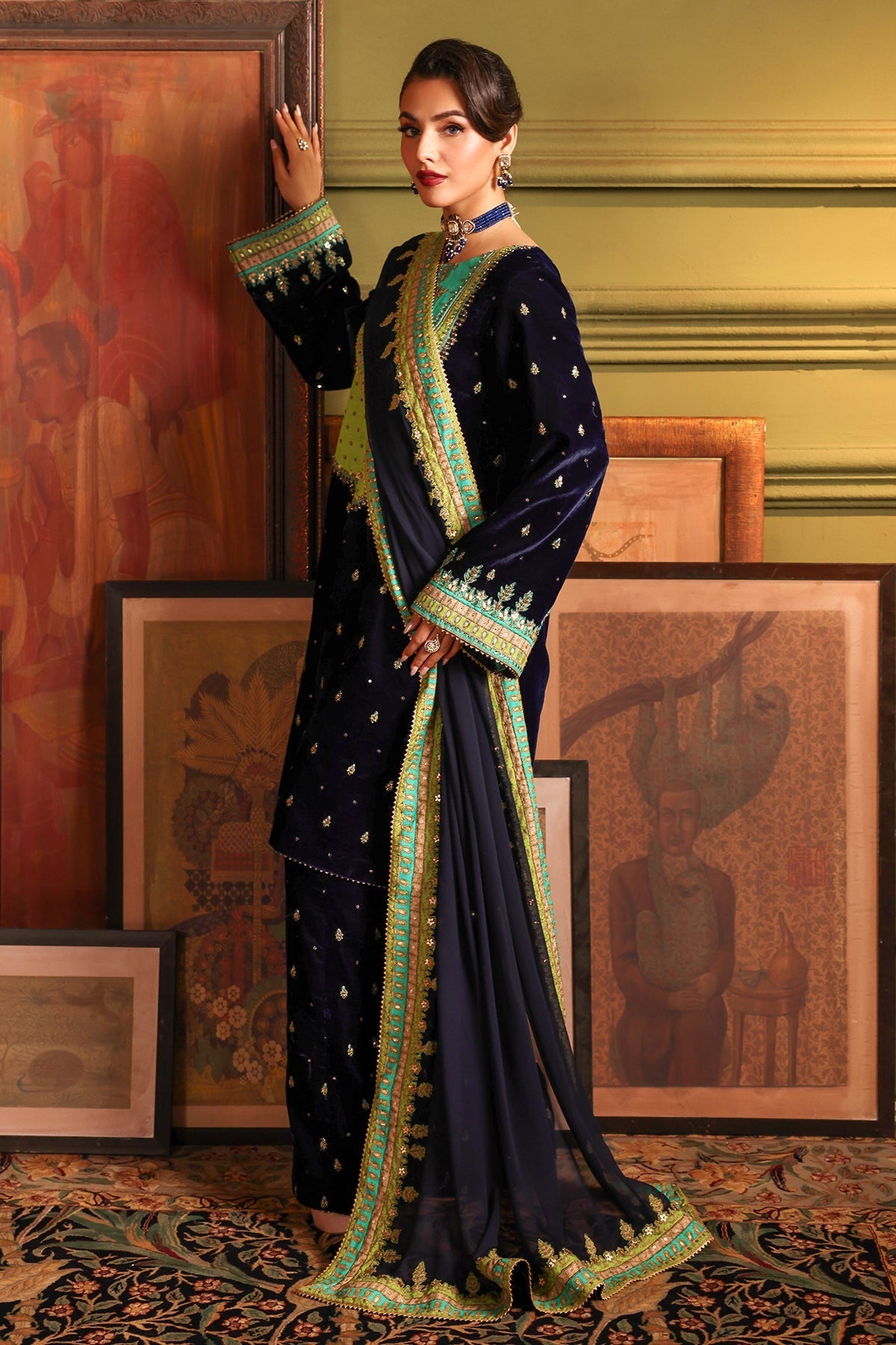 Embroidered Dyed Velvet Trouser  2.25 Meter