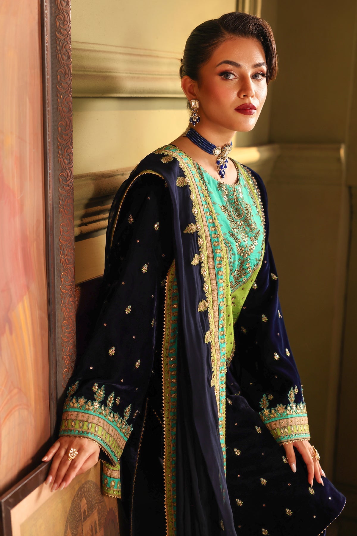 Embroidered Dyed Velvet Front & Sleeves  2 Meter