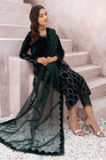 In a captivating Emerald Green hue, this long silhouette stands as a true work of art, embellished with a meticulous arrangement of crystals, pearls, and monochrome cut dana. The result is a unique masterpiece that exudes elegance and charm.