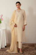 Introducing PEARLED IVORY-3PC (SHIRT & TROUSER DUPATTA)! This elegant set includes a beautifully crafted A-line shirt in zari lawn fabric, with front & back dyeing and embroidered details on the neckline and sleeves. The accompanying dupatta features a zari lawn fabric, dyed with delicate embroidered borders. Elevate your style with this timeless piece