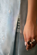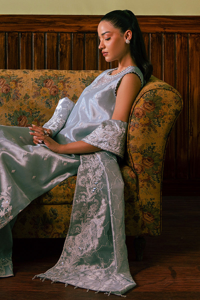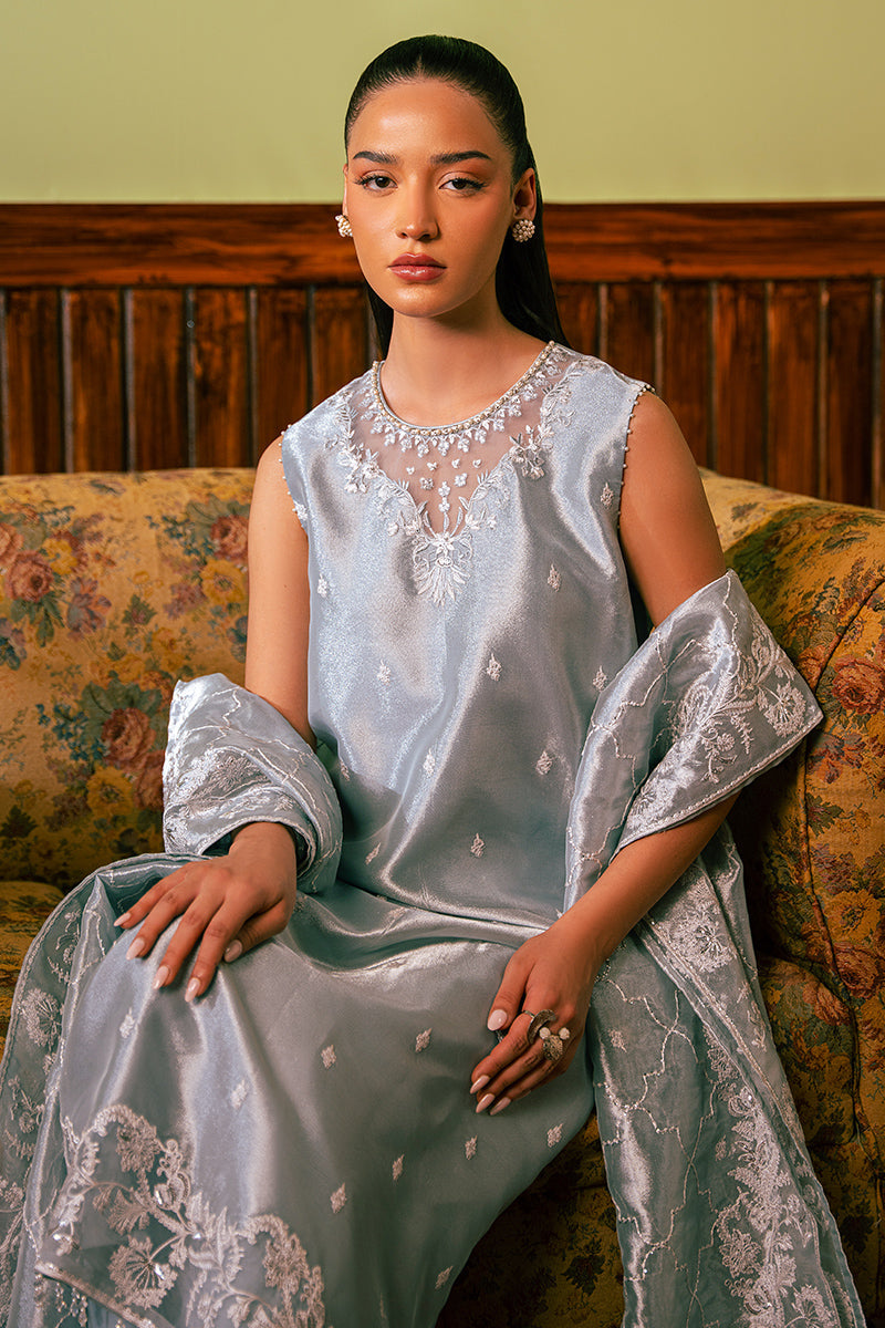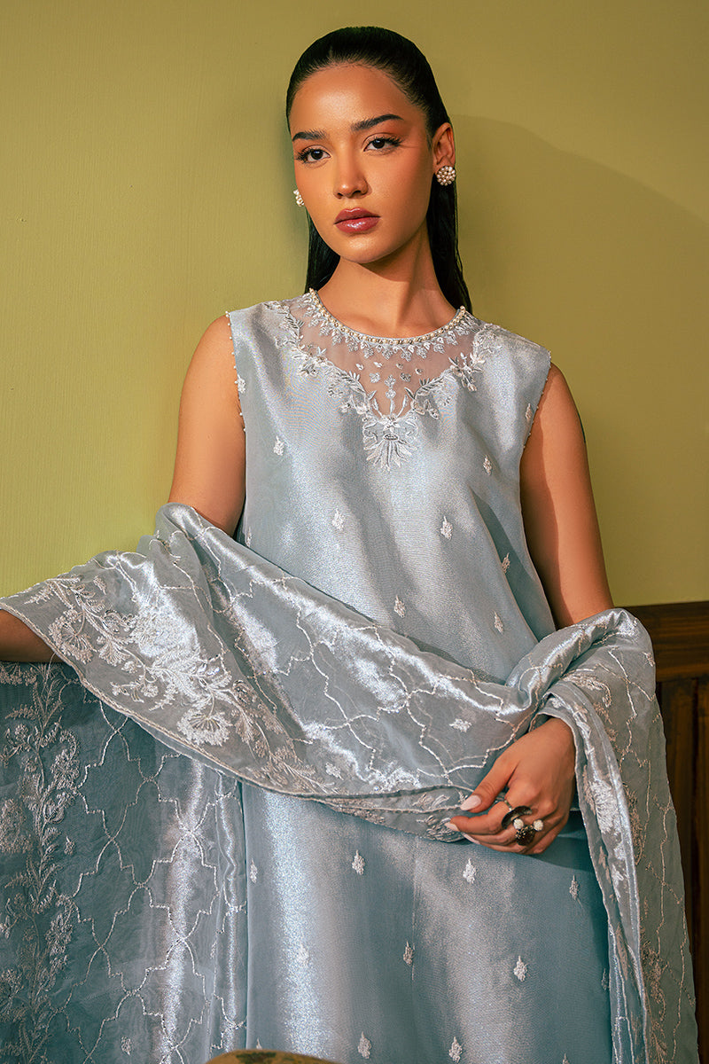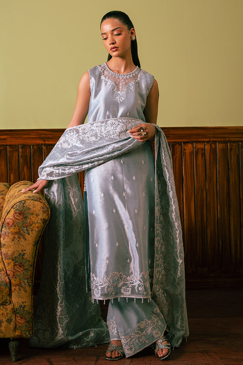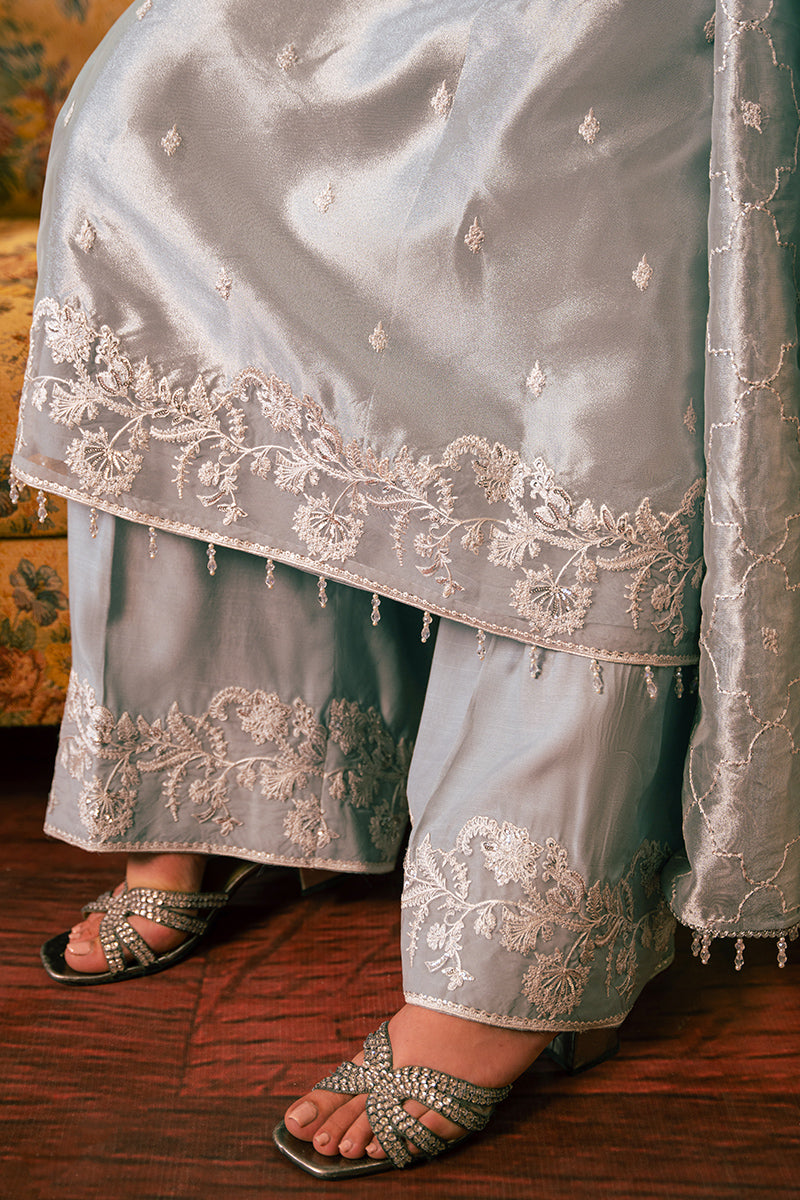 Expertly crafted and beautifully designed, the HAZY BLUE-4 PIECE EMBROIDERED ZARI SUIT will elevate your style. The shirt features intricate embroidery in zari on the front, back, and sleeves, along with a stunning embroidered neckline and a 120" embroidered patti for the hems and sleeves. The silk dyed trouser and slip, paired with the zari embroidered dupatta, complete the luxurious look. A must-have for any fashion-forward wardrobe.