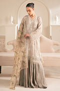 Expertly crafted, the VULCAN MUD-4PC CHIFFON EMBROIDERED SUIT exudes elegance and sophistication. The lightweight chiffon shirt features intricate embroidery on the front, back, and sleeves, along with an embroidered neckline and patti details. The silk slip and trouser provide a luxurious touch, while the printed organza dupatta adds a pop of color. Perfect for any formal occasion.