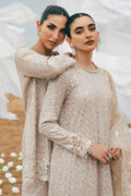 Enhance your style game with our SCINTILLATING CRYSTAL-2PC SILK EMBROIDERED PRET set. The silk jacket features a unique front opening with sheer border and tasseling detail, while the back is dyed and embroidered with a see-through hem. The V-neckline and straight sleeves add elegance with embroidered patch and tasseling details. The long culottes silk trouser completes the luxurious look with its embroidered design and fusing with lining. Elevate your wardrobe with this elegant and sophisticated ensemble.