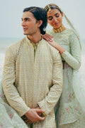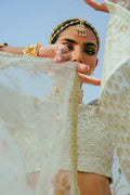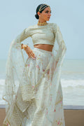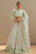 This 3-piece silk embroidered ensemble exudes elegance and comfort with its tranquil haze design. The choli features delicate sequin and embroidered detailing on the front and back, complemented by a small neck and full embroidered sleeves. The printed silk lehenga adds a touch of sophistication, while the organza dupatta showcases a beautiful blend of print and embroidery.