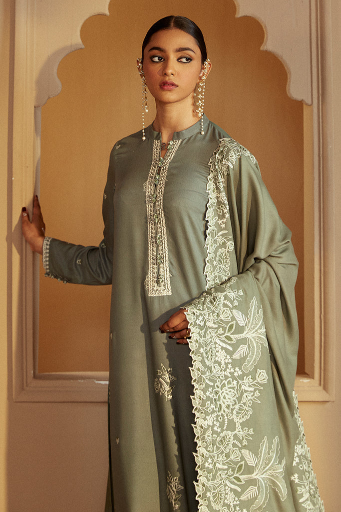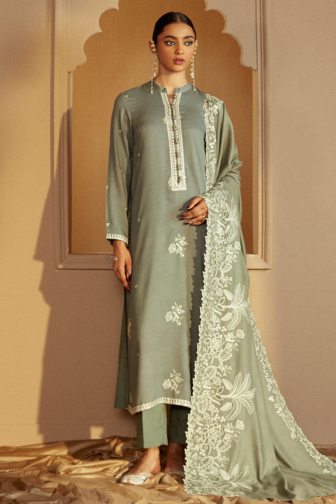 Elevate your style with the RTS Olive Garden set. This elegant ensemble includes a dyed embroidered shirt with intricate detailing along the neckline, sleeves, and back. The marina dyed trousers offer a comfortable fit, while the embroidered shawl adds a touch of sophistication. Perfect for any occasion, this set is a must-have for any fashion-forward individual.