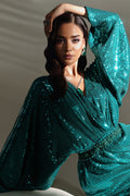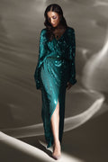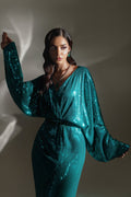 A scintillating jade green dream, ‰meraude Brille is a true embodiment of glamour and allure. Cut from lustrous sequins that shimmer with every step, the silhouette is cinched at the waist with an opulently embellished belt encrusted with glimmering crystals and delicate beads. Sophisticated, statement-making, and unapologetically luxurious - this is ‰lanss signature glamour, elevated for your most dazzling evenings.