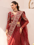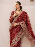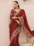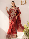Experience the epitome of luxury with our stunning maroon organza saree, an exquisite creation. The saree is adorned with meticulously hand-embellished borders, showcasing intricate craftsmanship that adds a touch of regal elegance to the flowing organza fabric. Paired with a breathtaking red blouse, this ensemble takes grandeur to the next level. The handcrafted blouse is embellished with shimmering pearls and beads, creating a dazzling contrast against the rich maroon of the saree. Each detail on the blouse is thoughtfully designed.