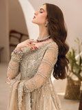 Introducing our luxurious Ivory Net Dress, a masterpiece of craftsmanship and elegance. This stunning ensemble features a hand-embellished blouse, intricately designed to showcase meticulous artistry. The blouse flows into long, hand-crafted flares adorned with embellished raw silk silver borders, adding a touch of opulence to the garment. Paired with this exquisite top is a silver lengha, embellished with a beautifully intricate border that complements the overall design. The outfit is completed with a delicate net dupatta, enhancing the ensemble's grace and sophistication.