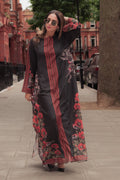 This striking black kaftan showcases a bold fusion of floral, geometric, and abstract patterns that flow seamlessly across the fabric. Nature-inspired motifs lend an organic elegance, enhancing the visual intrigue of the design. Crafted from airy georgette, this distinctive piece is a perfect blend of drama, artistry, and sophistication.