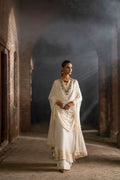 A long crinkle chiffon shirt crafted on continuous fabric with inner lining, featuring detailed borders and an ornate neckline, beautifully matched with an embroidered grip trouser. Completing this ensemble is a crinkle chiffon dupatta adorned with Mukesh-style embroidery and elaborate four-sided embroidered borders, adding a touch of sophistication to the overall look.