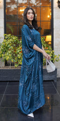 Exude elegance in charmeuse silk, bathed in a captivating teal hue, adorned with intricate monotone embroidery that elevates the design to ethereal beauty. A fashion-forward masterpiece, effortlessly embodying modern chic.