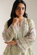 Step into a realm of delicate beauty and vibrant artistry with this enchanting two-piece ensemble. The serene pistachio green kurta is a masterpiece of intricate craftsmanship, featuring exquisite floral and geometric embroidery in shades of light pink and green, gracefully detailing the neckline, bodice, and wide, flared sleeves. Subtle mirror work or embellishments add a hint of sparkle, enhancing its allure. It is perfectly complemented by coordinating pistachio green shalwar, also adorned with matching embroidery along the hem, creating a cohesive and flowy silhouette. This outfit is ideal for festive gatherings, smart casual events, or making a distinctive and graceful statement.