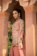 crafted silk thread and zardozi on surface of pure silk with four sided hand embroidered border net sash paired with maroon kundanzari shawl with four side zardozi border on gold silk applique, with custom metallic hand-made 3D embroidered waist belt. Finished with hand crafted loop buttons & signature inhouse finishes.
