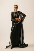 Indulge in the epitome of haute couture with a resplendent crop top, meticulously paired alongside gracefully cascading dhoti pants, handcrafted from the finest raw silk. Elevate this sartorial masterpiece with the ethereal allure of a pure organza floor-length open jacket, infusing your ensemble with an aura of unparalleled sophistication and timeless grace.