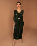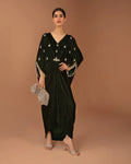 Borrowing from a starry nightscape, Perin is the pinnacle of modern glamour. The bottle green velvet kaftan has a delightful scatter of sequins and pearls crafted meticulously in true FS aesthetic for a look that radiates sublime sophistication.
