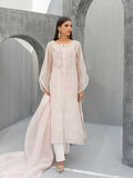 Make a statement with our white panel kalidar. It features intricate green and lime yellow embroidery, complemented by sequins, pearl details on the neck, dori work motifs on the damaan, and elegant organza and lace finishing. Complete with cutwork sleeves and a green organza dupatta with embroidery motifs.