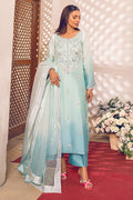 This long silk canvas shirt with ombre and embroidered details exudes elegance. Atlas jamawar on the hem adds richness. The floral neckline with handcrafted zardozi, embellishments, and pearls showcases craftsmanship. The organza dupatta, adorned with pearls, sequins, and hand block printed trimmings, adds grace and charm to the ensemble.