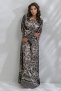 Elevate your everyday style with this elegant breathable shamooz silk kaftan, featuring a beige and black color palette. This is a long anklelength kaftan with flowy bell sleeves which is perfect for casual outings, summer-time movie nights or even breezy dinner dates.