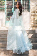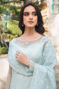 Dazzle in a pure organza shirt adorned with mirror embroidery and sparkling studded sleeves. Paired with a net gharara and a matching studded dupatta, this ensemble creates an elegant, dreamy look, perfect for special occasions. The blend of textures and embellishments adds a touch of sophistication, ensuring you shine at any celebration!