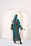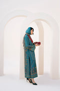 A blend of beautiful hues, this breathtaking printed ensemble is sure to be a show stopper this season. The silk set comes with complimentary scarf.