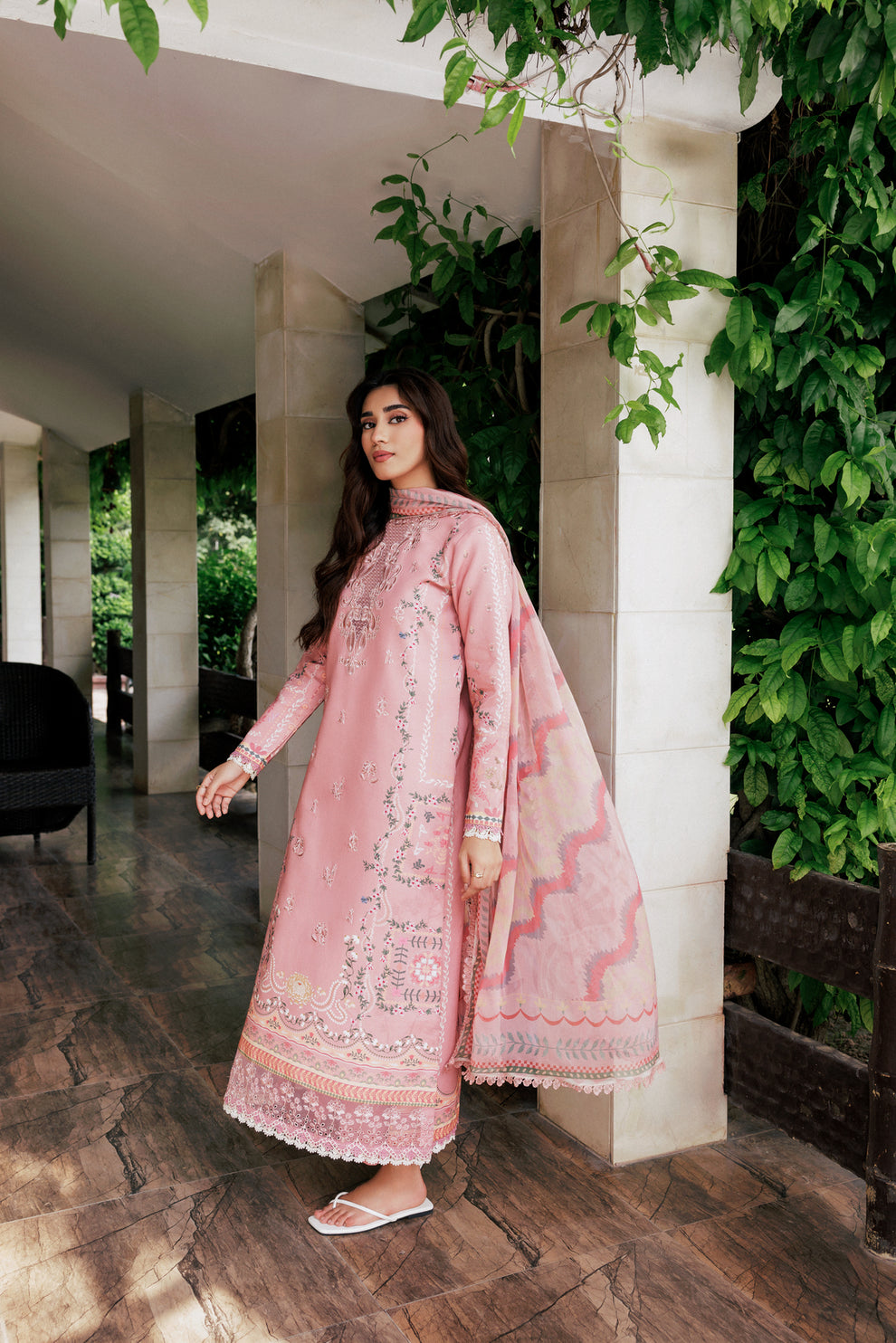 Digital Printed Embroidered Viscose Front 1.25 Mtr Digital Printed Viscose Back and Sleeves 1.85 Mtr Digital Printed Chiffon Dupatta 2.5 Mtr Dyed Viscose Trouser 2.5 Mtr Embroidered Border for Sleeves 1 Yard Embroidered Neckline Motif 1 Pc.