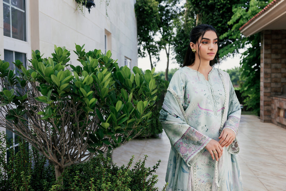 Digital Printed Viscose Front 1.25 Mtr Digital Printed Viscose Back and Sleeves 1.85 Mtr Digital Printed Chiffon Dupatta 2.5 Mtr Dyed Embroidered Viscose Trouser 2.5 Mtr Embroidered Border for Sleeves 1 Yard Embroidered Hem Border 1 Pc.