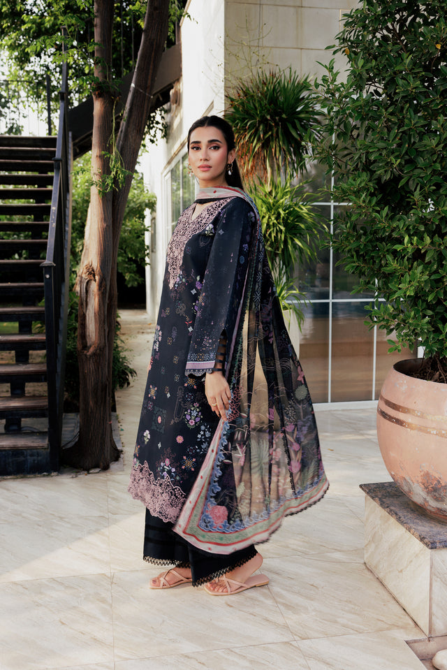 Digital Printed Viscose Front 1.25 Mtr Digital Printed Viscose Back and Sleeves 1.85 Mtr Digital Printed Chiffon Dupatta 2.5 Mtr Dyed Viscose Trouser 2.5 Mtr Embroidered Border for Sleeves 1 Yard Embroidered Crochet Neckline 1 Pc.