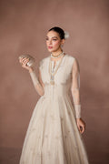 Embroidered Net Frock With Stone Embellished and Hand Made Button on Neckline (Ready)