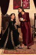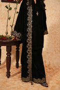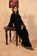 This semi-formal black velvet shirt exudes elegance with its sleek design. Featuring a placket with a flat collar and a hand-embellished button, it offers a refined look. The long bell sleeves showcase intricate tilla and sequin embroidery, adds a touch of glamour. Paired with a shalwar adorned with matching embroidery, this ensemble makes you stand out for any occasion.
