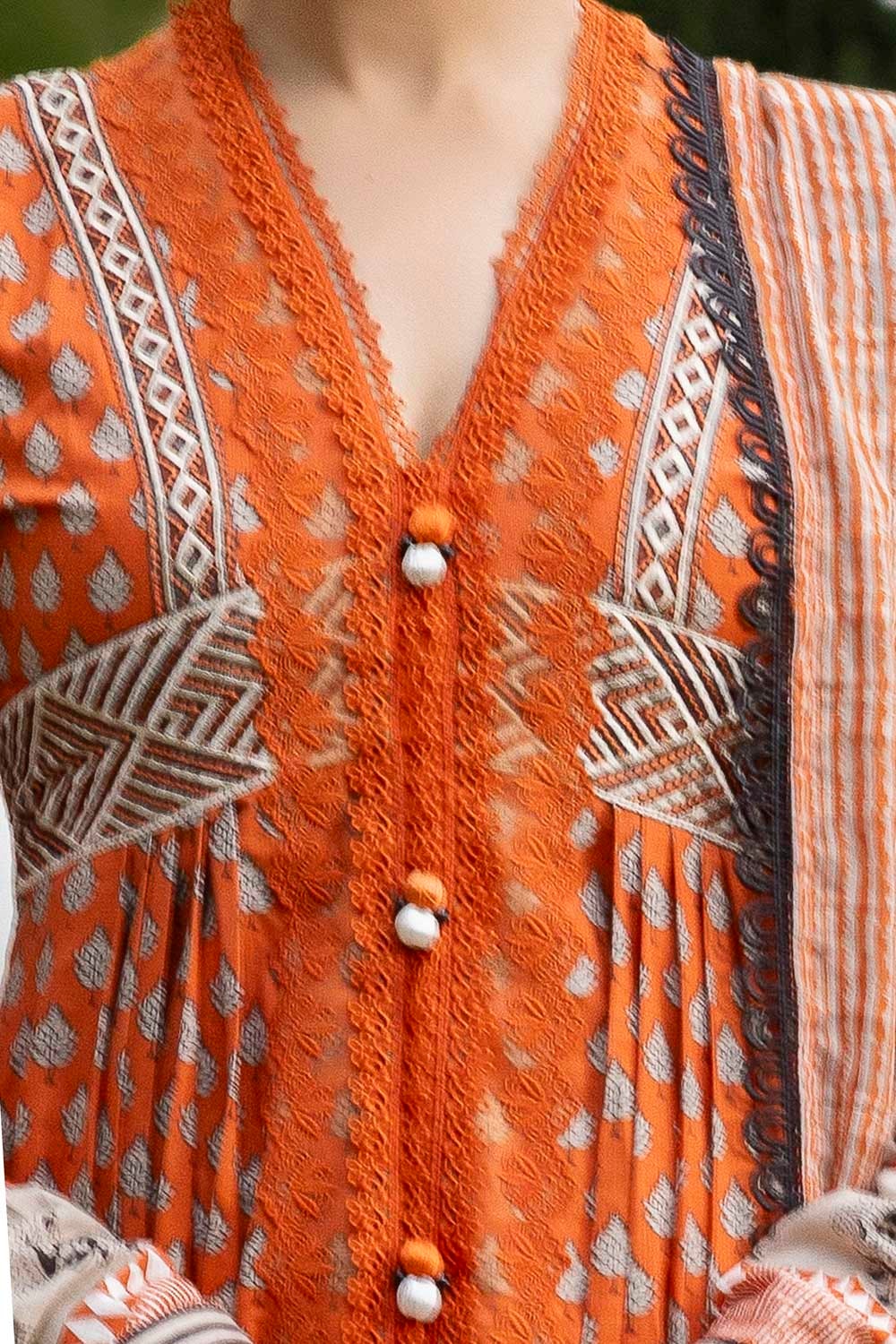 Printed Khaddar Shirt with Embroidered Neckline on Organza - 1.75 Meters