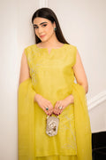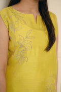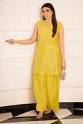 Lime Radiance in straight cut shirt short shirt with Farshi Shalwar. Embellished with crystals in a flower motifs gives it a Chic Fashionable look.
