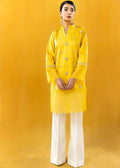 Aurora, shines with grace over a fine pure organza satin fabric. Bright Mustard yellow colour is an ultimate addition for the the Eid Festive. The shirt comes with cluttered embellishment details on the front and sleeves. Embellishment is a combination of crystals stones and pearls. Pair it with contrasting or same coloured boot leg pants to make your Eid memorable.
