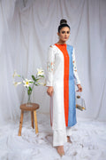 Marlin is a long colour blocked raw silk shirt with heavily embellished sleeves. Zipper details on the shoulder and abstract embellished pattern on sleeves are adding details to it. Pair it with white boot leg pants to be the style icon.