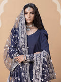 Blue embroidered Net dupatta with four side borders