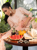 Delicate and luminous, Peachlight captures the essence of summer in every stitch. Crafted in a warm blush tone, this 3-piece ensemble features an intricately embroidered lawn shirt paired with an embroidered organza daman patch. The Monark Tarkashi dupatta adds a layer of lightness, enhanced with embroidered organza patchwork that completes the look with charm and finesse. A plain dyed trouser brings perfect balance to this refined design.