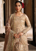This mesmerizing pink ensemble is a perfect blend of elegance and glamour, featuring a shirt, gharara, and dupatta, all crafted from opulent tissue fabric. The gharara, with its graceful flare, is paired with a matching tissue dupatta, creating a cohesive and sophisticated look. Adorned with intricate patterns of shimmering pearls and sequins, this outfit captures light and attention with its dazzling effect. The delicate embellishments enhance the outfitss refined beauty, making it an ideal choice for any occasion where you wish to make a stunning statement.