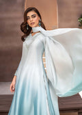 Crafted from luxurious silk tissue, this shirt showcases a captivating ombre effect, transitioning seamlessly from a refreshing aqua to a deeper shade of the same hue. The relaxed, universally loved silhouette features a flattering neckline embellished with delicate handiwork, pearls, and sequins, exuding timeless elegance effortlessly. Completing the ensemble is a coordinating ombre pure medium silk dupatta, tying the look together with graceful flair.