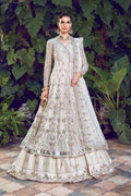 Our ˜IYLAs features a luxurious pearl white palette angrakha lehenga set with intricately detailed motifs inspired by the blooming forests and Mughal artistry adorned with our signature craft of gotta, panni, lappa, suchi, and kiran all over, so you could sparkle during your festivities.