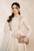 Long panelled frock with chickenkari and sequin embroidered panels and yoke detailed with loops and pearls on front