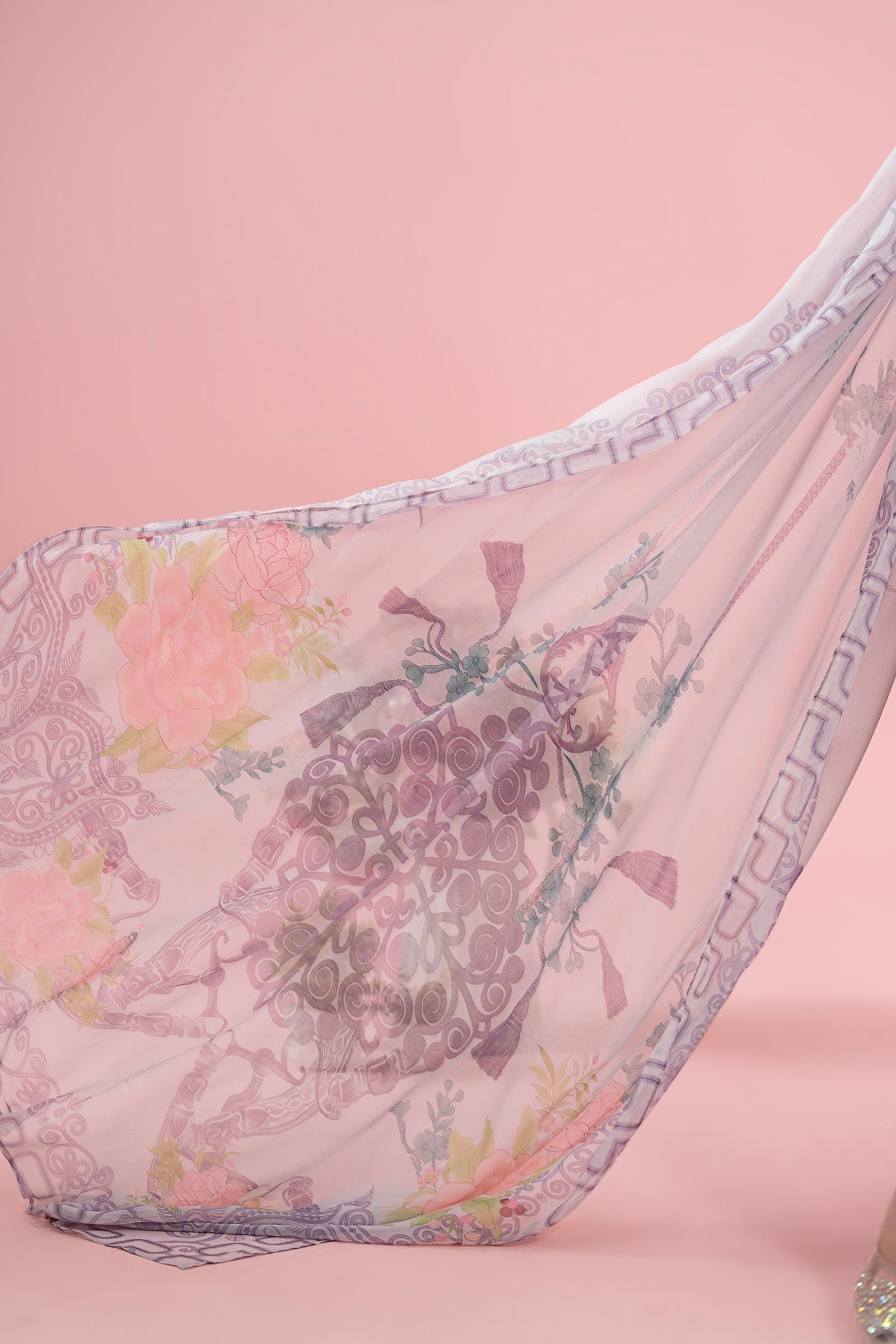 Full Sleeves With Organza Boring & Schiffli Embroidered Border