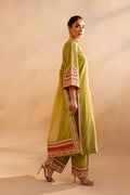 In the serene hue of White Grape, this 3-piece ensemble exudes refined charm. The V-neck straight shirt features an elegantly embroidered neckline, with contrasting embroidered organza borders adorning the sleeves, sides, and hem-each detail adding a graceful flourish. Paired with same-tone grip trousers for a clean silhouette, and tailored with a fixed front, side zipper, and elasticated back for comfort. The look is completed by a soft organza dupatta, finished with four-sided contrast embroidered borders and delicately adorned pallus-a timeless expression of subtle sophistication