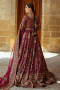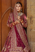 In a plum hue, Kandhari exudes the aura of modern sophistication with its unique color palette, round neckline & scalloped three quarter sleeves. The lehenga choli is bejeweled with heavy hand adda embellishments all over including naqshi, dabka, payal, heavy sitari work, cut dana, stone work & crystal hangings details & embroidery along with texture play, pattern work & delicate resham work on the bodice. The back of the choli is adorned with heavy handmade tassels. The main showstopper is the glistening lehenga with an all over pattern of heavy adda embellishments including crystals, mukeish, cut dana, sitari & playful texture work with thread embroidery along with intricate motifs finished with heavy layers of embellished and embroidered borders. The dupatta is adorned with hand adda embellishment patterns & embroidery spread a long with heavy embellished border finished with screen printed facing giving it a luxurious effect. Outfit comes with uniquely structured embellished & embroidered clutch.